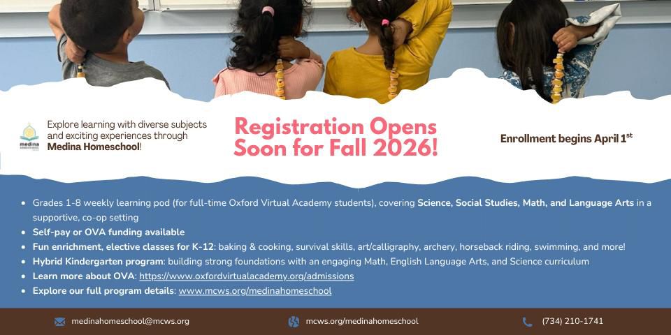 Medina homeschool – Fall 2026 Enrollment starTs april 1st, click here for details